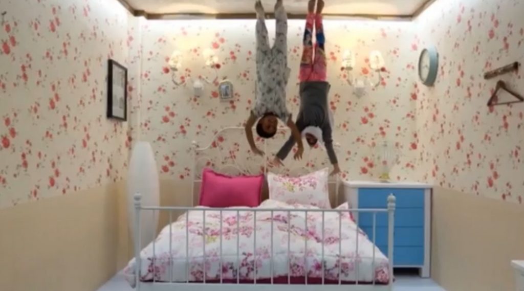 Barang – barang di sini tidak menempel pada atap, melainkan pada dinding. Sehingga, posisinya miring dari posisi berdiri pengunjung. Namun, ini justru menjadi tantangan tersendiri ketika berpose.