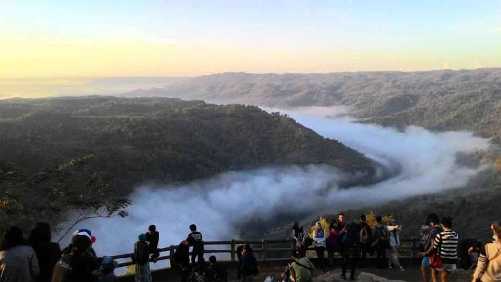 Selain bisa makan buah gratis, sudah disediakan jg sebuah spot/tempat dimana anda bisa melihat pemandangan pegunungan, dari sini jg bs terlihat pantai Parangtritis jika anda melihat ke arah selatan, semua begitu mempesona dilihat dari ketinggian. Satu lagi yang tidak kalah istimewa adalah pemandangan sungai oyo yang melintang dan berkelok, yg terletak persis di bawah bukit Mangunan. Saat awan melintas, anda akan merasakan sensasi berada di atas awan, maka dari itu tempat ini pun dijuluki sebagai negeri diatas awan. Karena lokasinya terletak di ketinggian, maka perjalanan menuju kesana akan melewati beberapa medan berupa tanjakan dan belokan-belokan tajam, jadi menurut hemat kami transportasi paling pas adalah menggunakan motor, sehingga medan-medan tersebut dapat dilalui dengan lebih mudah dan cepat.
